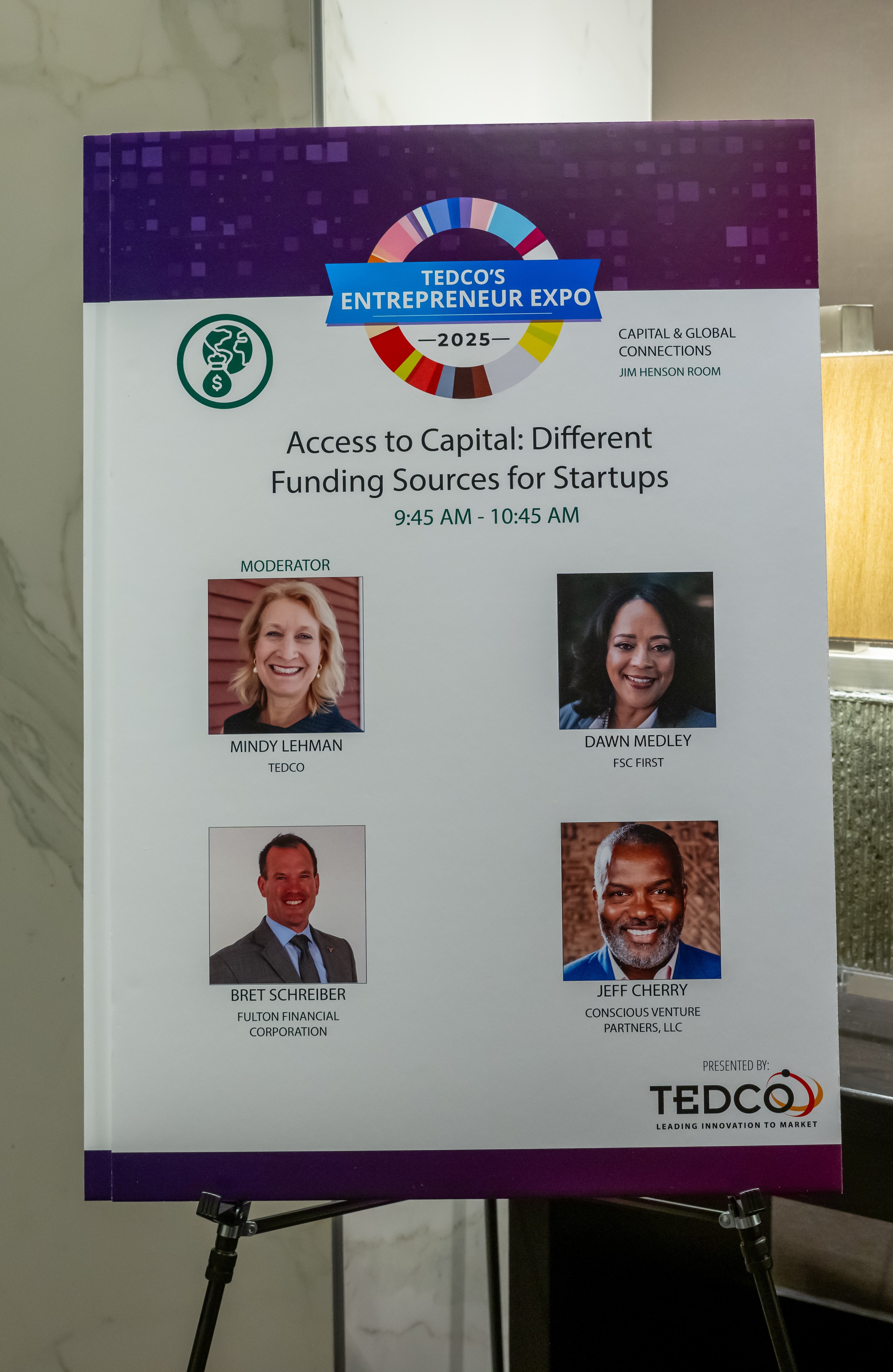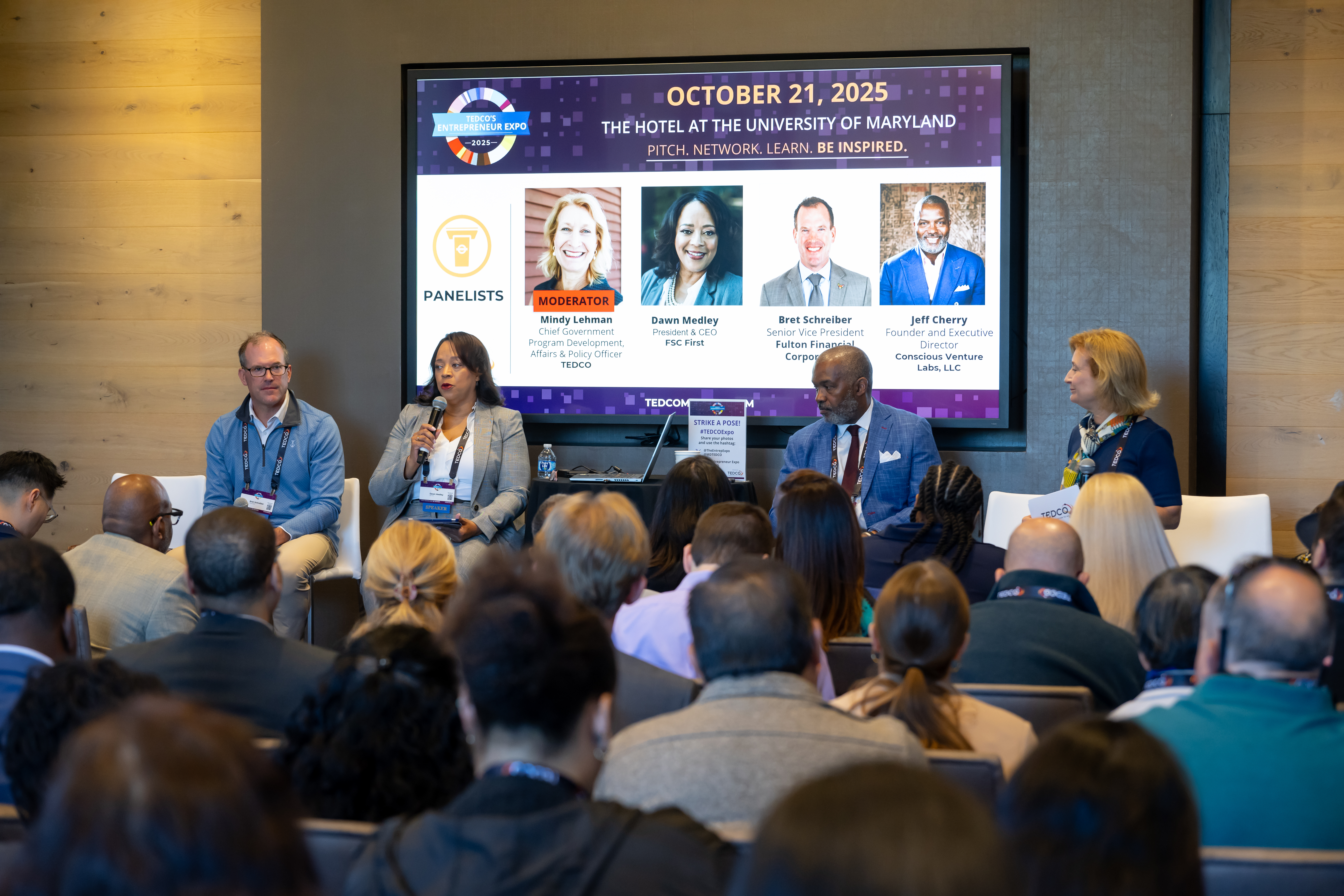 Moderated by Mindy Lehman of TEDCO, the session featured an authoritative assembly of leaders who collectively are active through the full spectrum of capital: Jeffrey Cherry, managing partner of Conscious Venture Partners LLC, Dawn Medley, president and CEO of FSC First and Bret Schreiber, senior vice president, life sciences and technology, Fulton Bank. Their unified message was clear: the money is here, but success demands preparation, self-awareness and the relentless pursuit of connection.